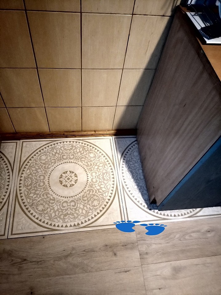 Jeigu reikia paslėpti, broką tai nupiešė su photo redagavimo programa kleckus, 1vnt grindinės porcelianinės plytelės, kaina buvo 122 eurai, bet pirko nukainuotą iš salono už 5 eurus už vienetą, per pigiai remontavo, o ir vinilas pigus..😁🤣